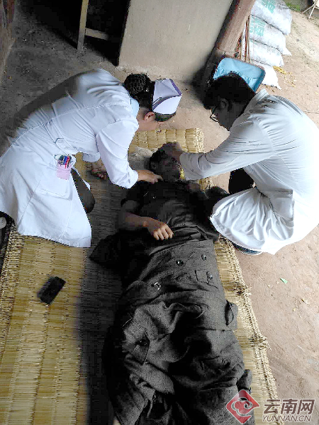 云南网讯(通讯员 熊衍 范娜 记者 沈浩) 9月12日11:20分,云南省普洱市墨江县中医医院医护人员正在对通关镇牛库村开展抗震救灾医疗巡查,在医疗服务点该村村主任急急忙忙前来求助,上新组村民小组一户名叫王光明的村民为修补在地震中屋顶瓦片震落部分,自己爬上屋顶用油布遮挡,防止淋雨,不慎从房顶坠落,人还在昏迷不醒,需要尽快抢救。