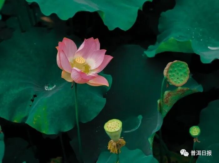 炎炎夏日里,淡妆浓抹总相宜的荷塘总能送来一阵沁人心脾的清凉。若恰逢雨后,晶莹剔透的雨珠散落在翠绿的荷叶上、挂在粉红的花瓣上,雨后的清新与通透尽收眼底。