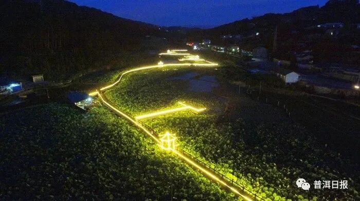 白天赏荷体验的是乡野田园之美,夜里到荷塘则有进入仙境的美轮美奂之感。走在荷塘的栈道上,水面映着灯光、灯光打在荷塘,再听取蛙声一片,这才是夏天该有的模样。