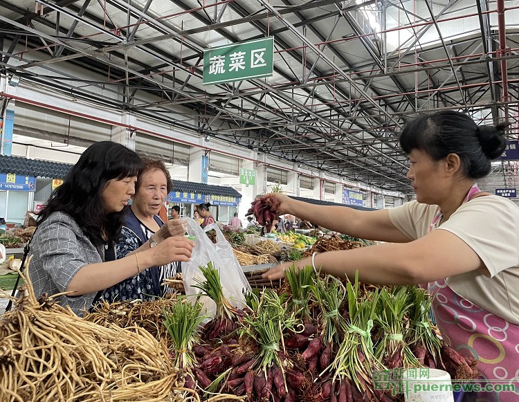 日前,在思茅区五一集贸市场,茴香根、党参、小红蒜、鸡刺根、牛蒡子根、满山香等新鲜药根琳琅满目,散发出淡淡的药草香味,前来购买的市民络绎不绝,十分热闹。“端午节要到了,药根品种很多,来买的人也很多。我们家卖着露水草、牛蒡子根、鸡刺根等,价格和去年差不多,到了端午节药根品种还会更多。”商贩李萍说。
