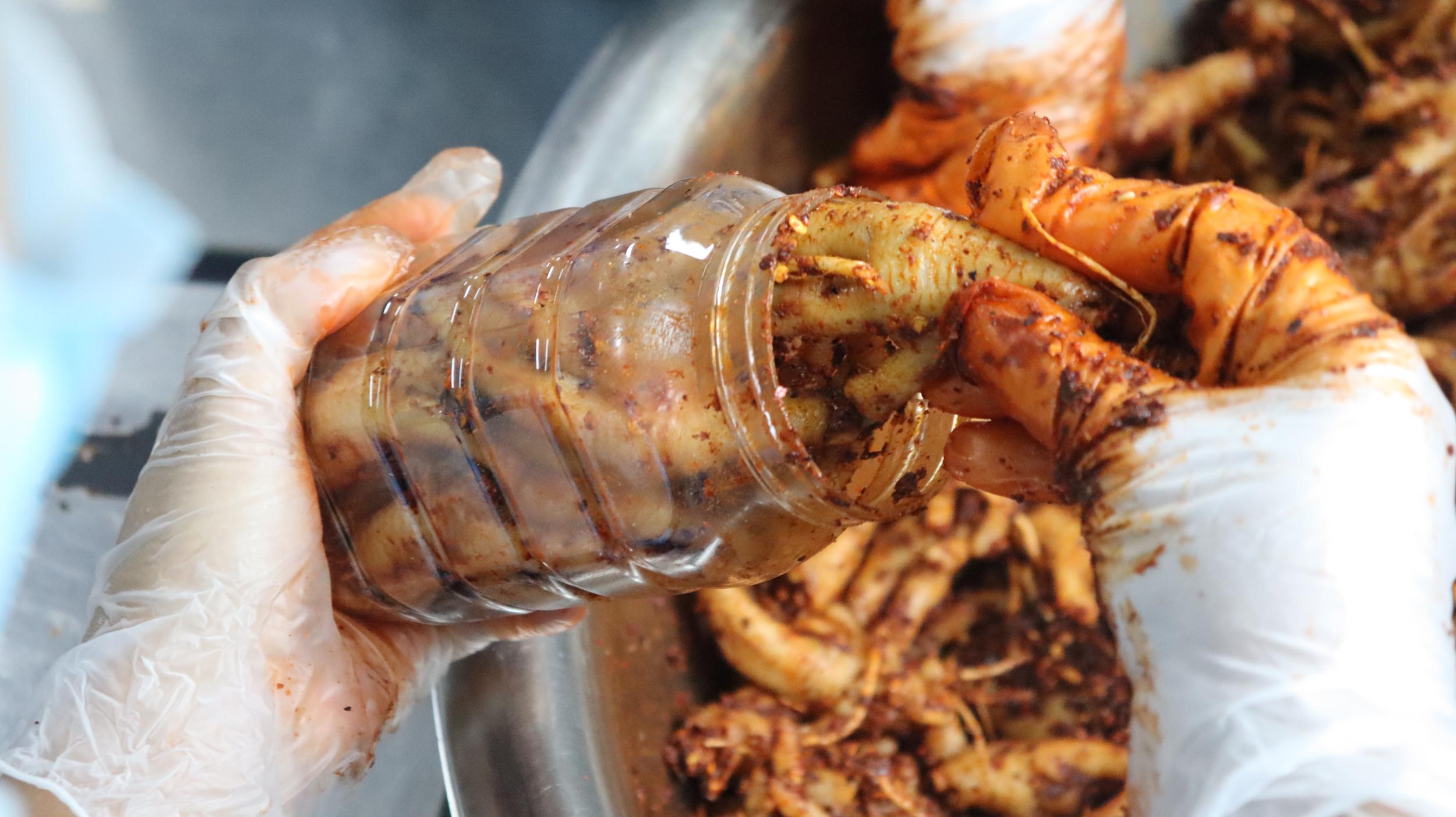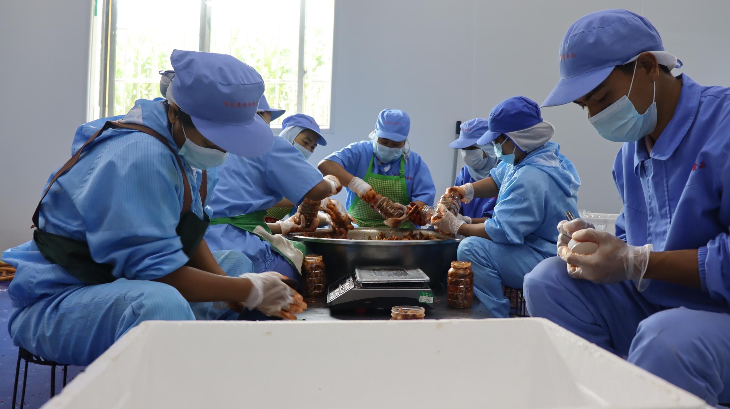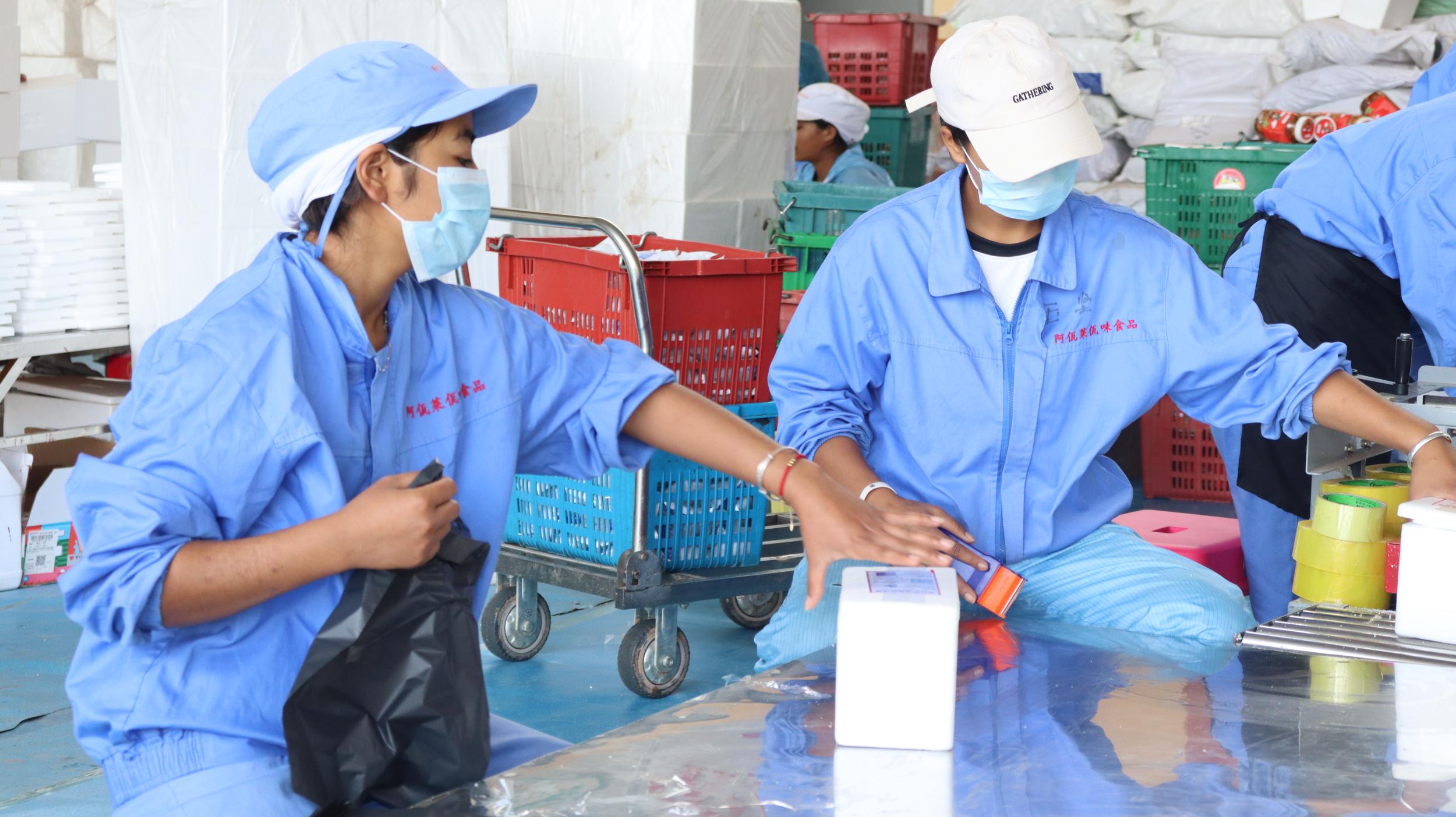 走进西盟县阿佤莱佤味食品加工有限公司现场,工人们井然有序地在包装生产线前忙着打包刚从生产车间运输出来的佤味食品,鸡脚、牛皮、苤菜根等来自普洱当地的原材料经过美味的洗礼,有序被工人们装入包装罐,准备发往全国各地。