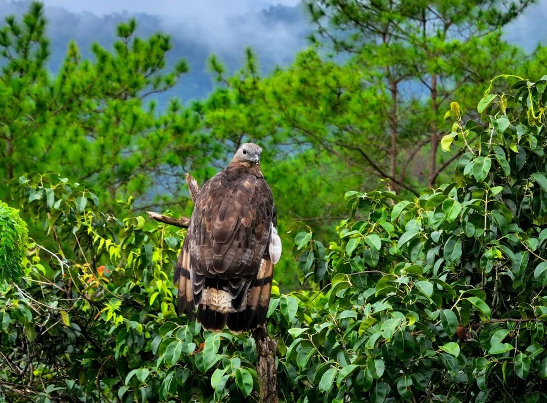近日,在普洱市思茅区六顺镇的一片茂密丛林中,记者通过无人机航拍,意外捕捉到国家二级保护野生动物凤头蜂鹰的珍贵画面。镜头中,一只凤头蜂鹰独立枝头,身姿挺拔,姿态从容,与周围苍翠的青山、缭绕的晨雾和挺拔的松林浑然一体,构成了一幅如诗如画的生态美景。