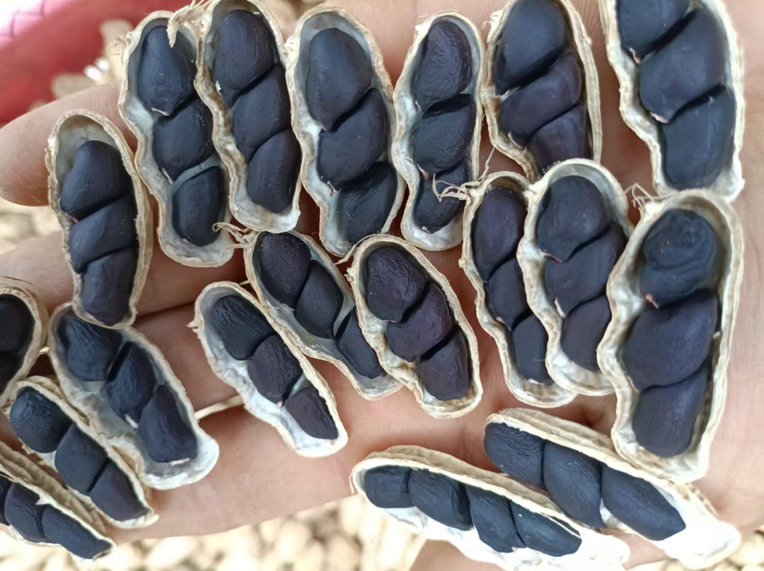 黑花生外观上与普通花生无明显差异,却有着黑红色的籽仁,富含硒、高蛋白以及多种人体所需的营养成分,堪称天然的保健食品,加之其市场价格可观,被誉为花生界的“黑珍珠”。
