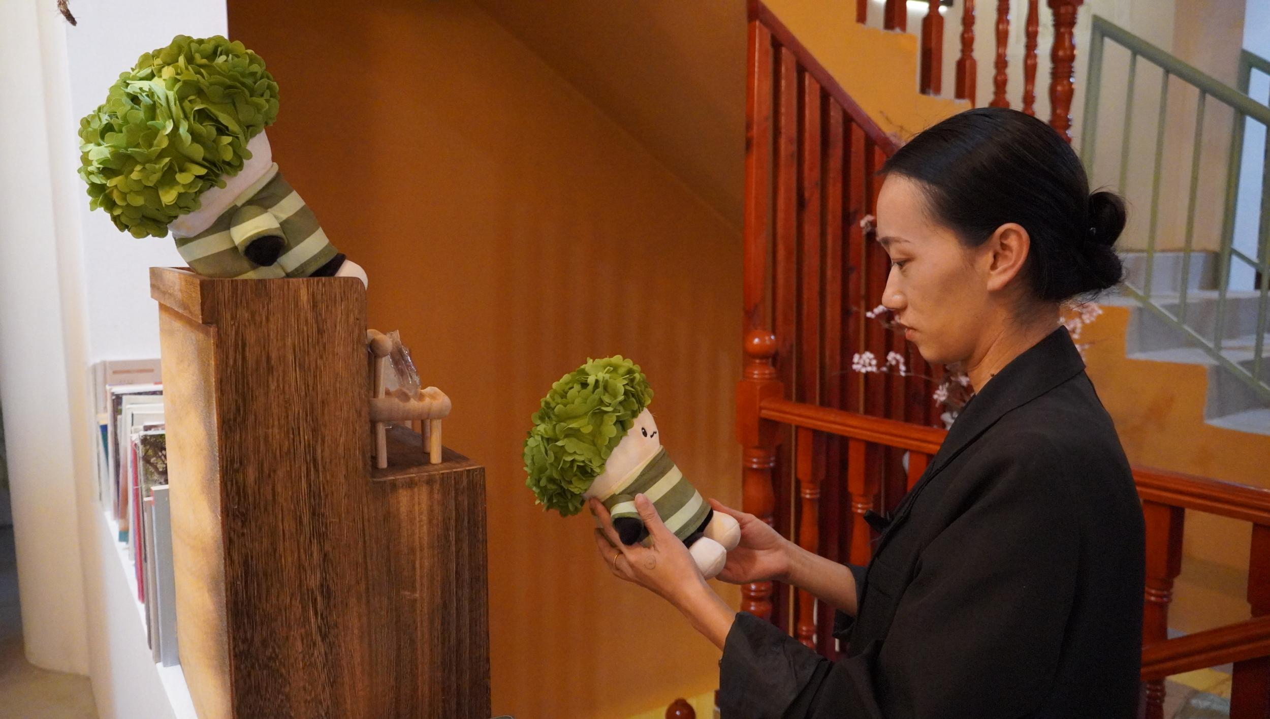 李薇薇正在挑选文创产品当伴手礼。