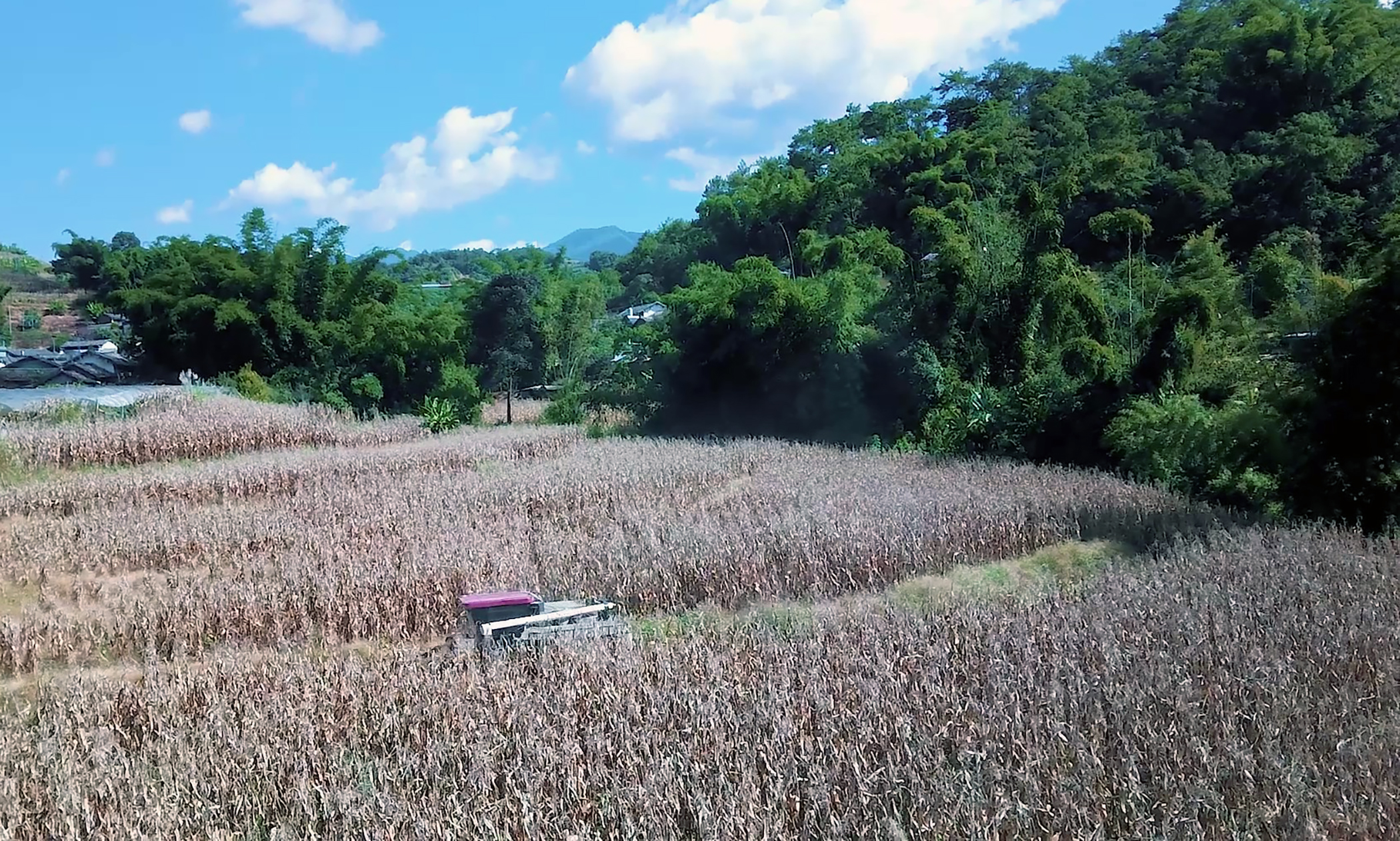 金秋时节,普洱市镇沅彝族哈尼族拉祜族自治县广袤的田野上一派丰收景象。在勐大镇地管家农业专业合作社示范地里,大型联合收割机来回穿梭,一排排玉米卷入机仓,经过切割、脱粒等工序,饱满的玉米粒从出粮口倾泻而下,落入运粮车。