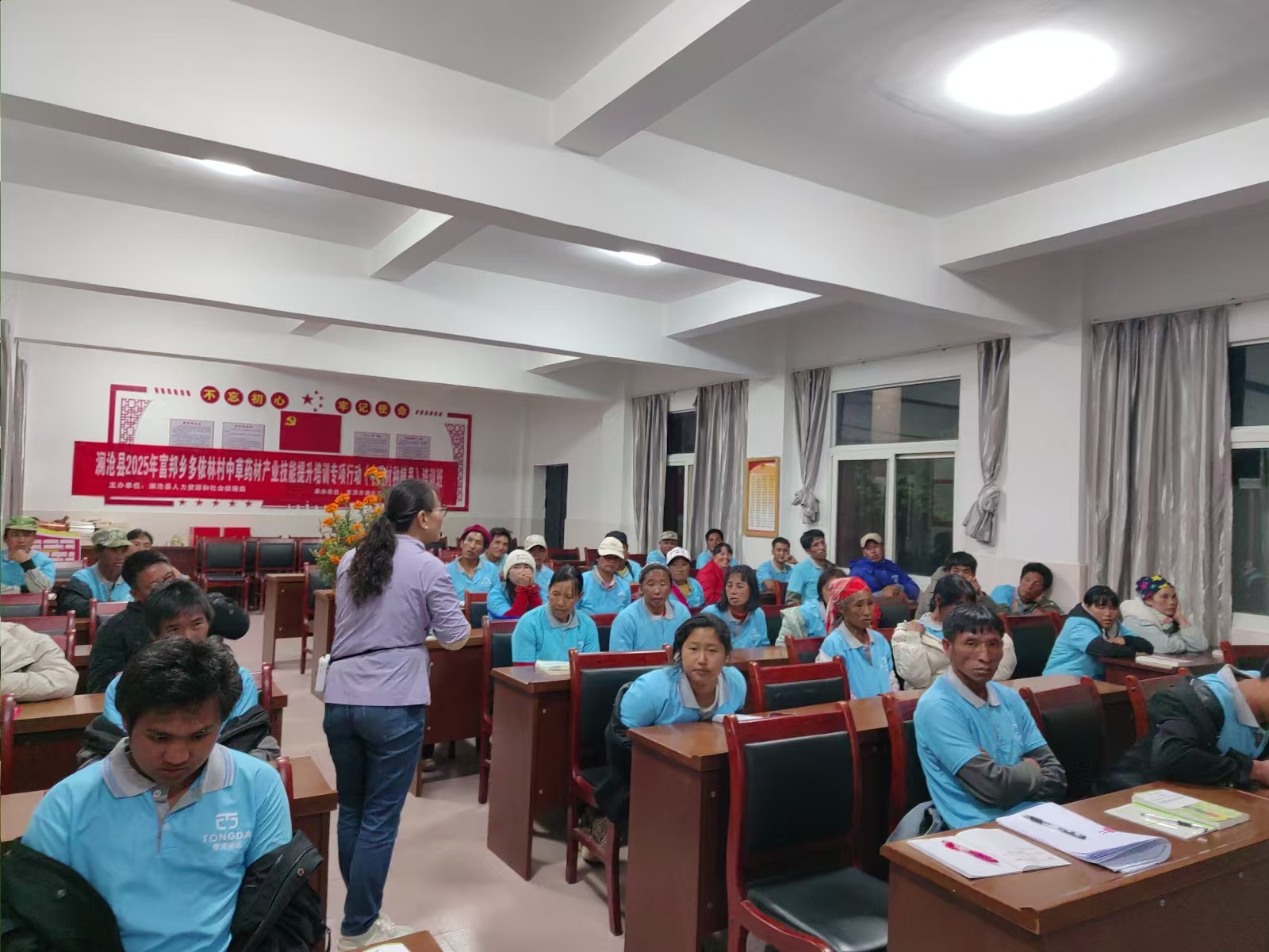 乡村振兴,产业为基,人才为要。2024年10月,富邦乡迎来产业发展的关键契机:成功牵手云南泽润农业发展(集团)有限公司与上海加邻生物科技有限公司,总投资约6.5千万元的中药材基地产业项目(一期)正式落户多依林村,1000亩的连片种植规模,为当地绘就了“产业兴村”的新蓝图。项目落地后,“懂技术的人在哪儿”成为产业发展的核心问题。此次中草药种植员培训,正是富邦乡瞄准产业需求、提前布局人才培育的关键一步,让“产业落地”与“人才储备”同频共振,为千亩基地的后续运营吃下“定心丸”。