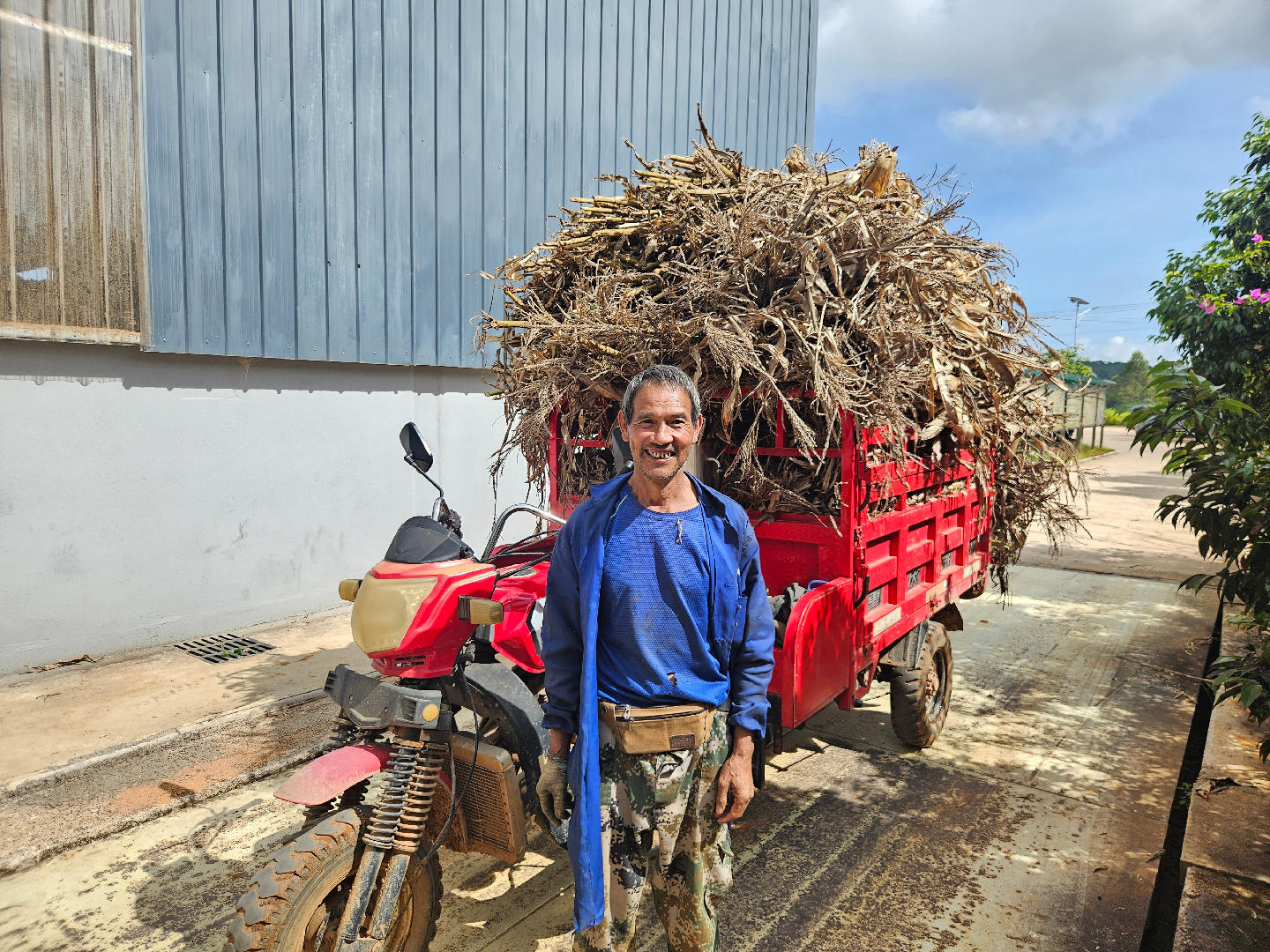 走进厂区,工人们熟练地操作设备,将一捆捆金黄的秸秆加工成一袋袋优质饲草。“我们与云南大学野象谷建立了稳定合作,目前已供应饲草20余吨,销售渠道畅通无阻。”加工厂负责人介绍道。该加工厂每日收购秸秆约20吨,产出成品饲草约10吨,预计年处理秸秆量达2万吨,不仅实现了农作物秸秆的资源化利用,有效减轻了焚烧带来的环境污染,还为周边农户开辟了新的增收渠道——农户通过出售秸秆获得额外收入,每年可带动若干户家庭实现“家门口就业”,真正实现了生态与经济的双赢。