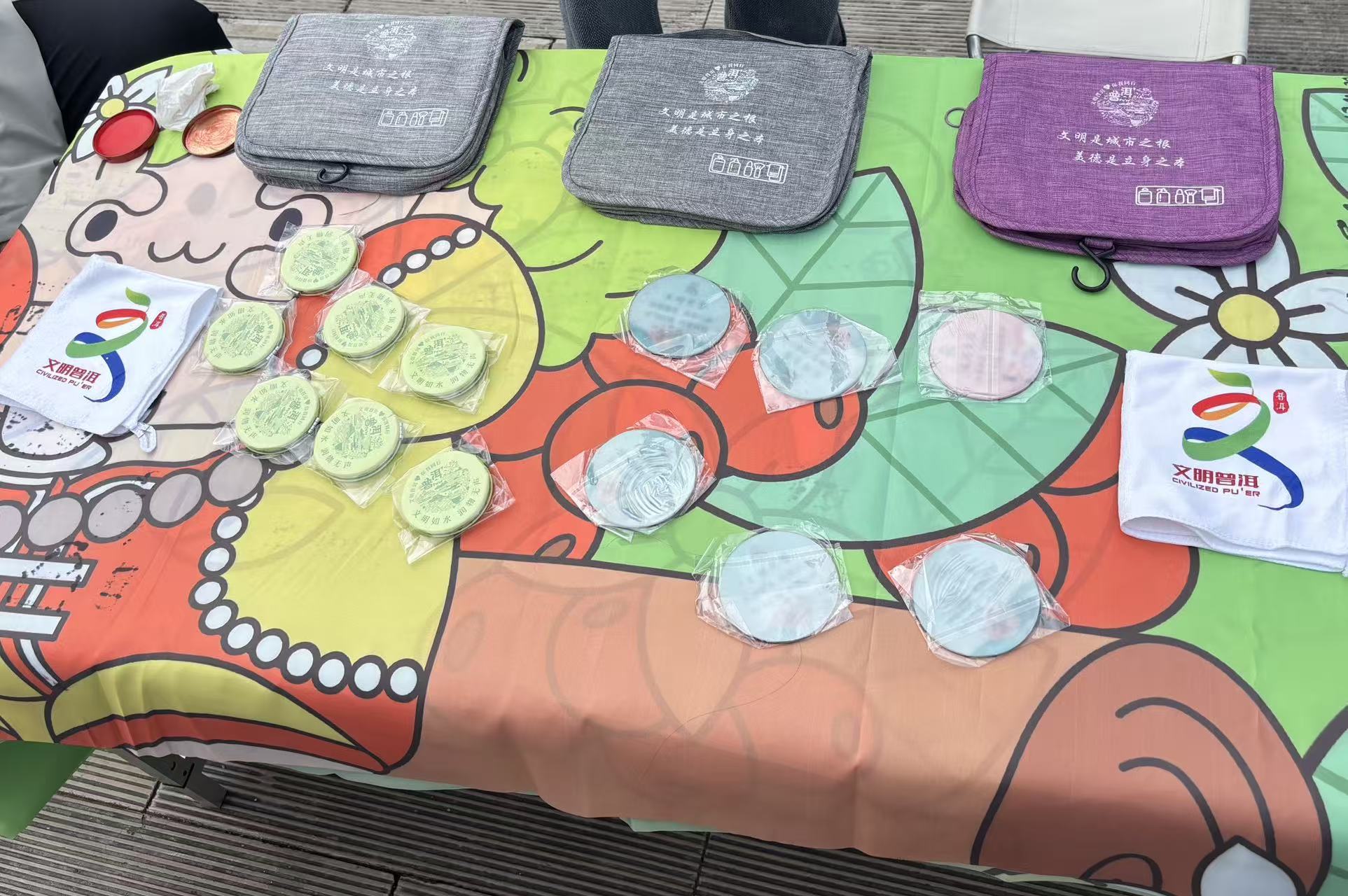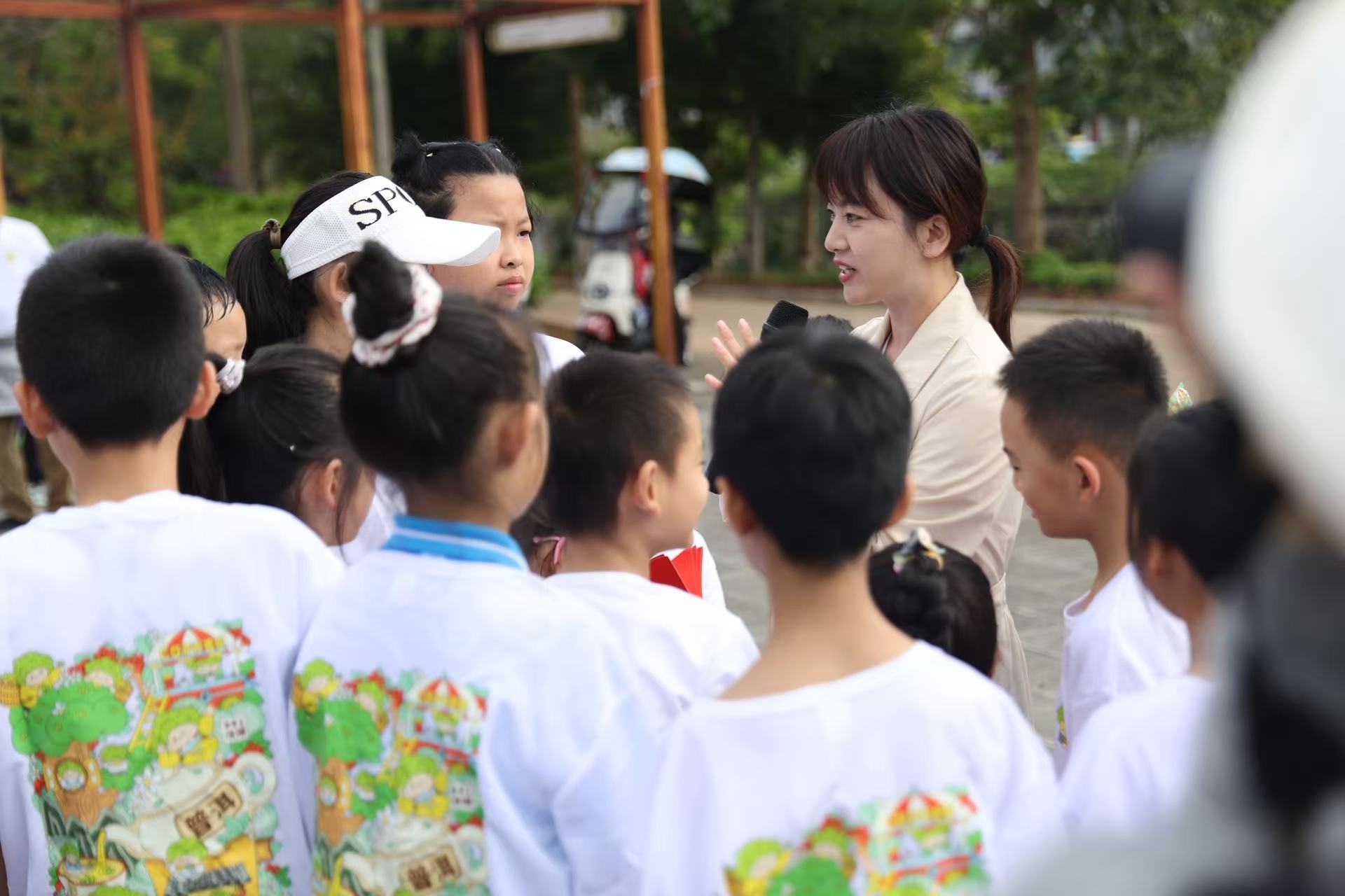 上午8点30分,茶马古镇滨河路集结点热闹非凡。孩子们在印着“守护思茅河,文明我先行”的横幅前签下名字并画上了可爱的涂鸦,领取了专属“通关文牒”和印着“普洱小树灵唛嚛”的文创T恤,脸上满是期待。在破冰NPC小芷的带领下,大家齐声合唱《让我们荡起双桨》,熟悉的旋律伴着河风飘扬,瞬间拉近大家的距离。