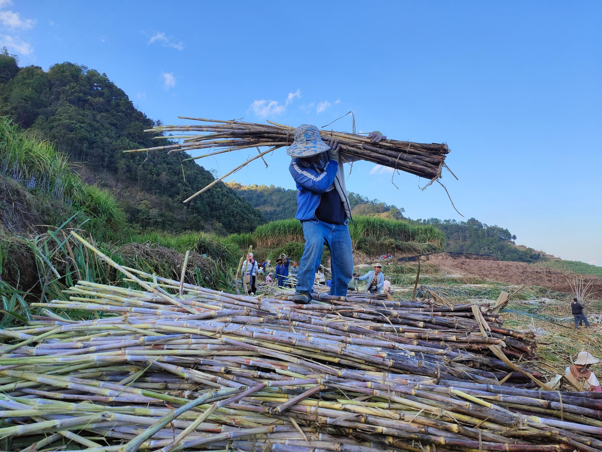 这份丰收的底气,源于谦六乡对甘蔗产业的深耕细作。作为澜沧县的甘蔗主产区之一,谦六乡已有十多年的种蔗历史,亚热带气候带来的充足光照以及肥沃的土壤,让这里长出的甘蔗糖分足、品质优,深受糖厂青睐。近年来,乡里推行“企业+集体经济+甘蔗产业”模式,不仅为蔗农提供了稳定的销路,还通过政府补贴、技术培训等政策扶持,让种蔗变得更省心、更高效。松山林小组借着这股东风,家家户户扩大种植规模,糖料甘蔗成为村民增收的“铁杆庄稼”。