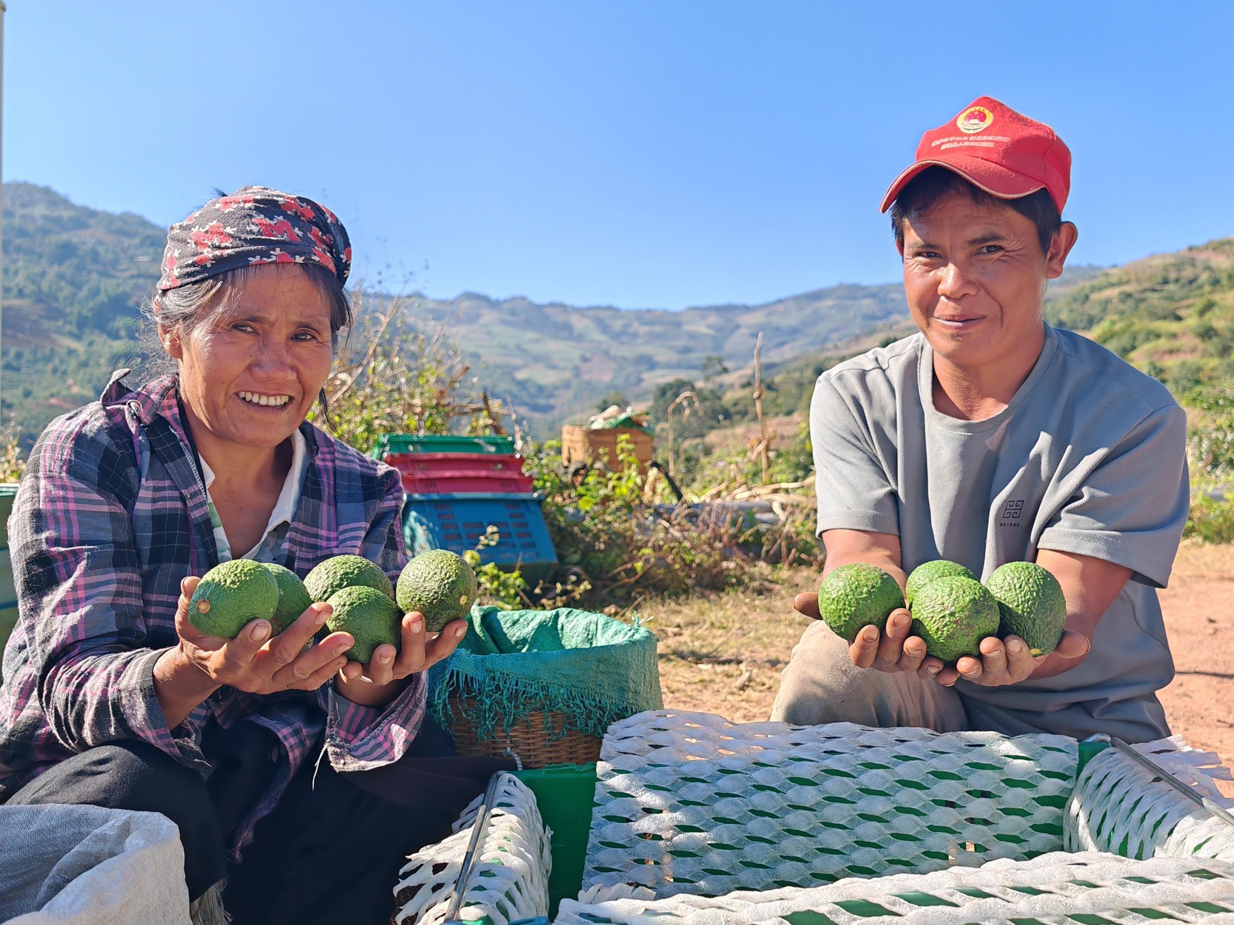 据王艳介绍,随着牛油果市场需求不断提高,销售量逐渐增加,为满足市场供应,及时为消费者提供新鲜度高、品质好的牛油果,孟连县产投集团科学布局、精准安排,对牛油果采摘地块、采摘时间、采摘成熟度等各个环节严格把控。在娜允镇南抗村牛油果种植基地,沉甸甸的青绿色果实压弯了枝头,一派丰收景象。基地负责人毕永生正在指导村民严格按照技术标准抓紧采收牛油果。“我们采摘牛油果很讲究,首先干物质一定要达到标准,干物质达到22%以上,我们才采摘下来,采摘的时候使用两剪的方式,一剪是从枝条上挂果处采下来,第二剪是从果蒂这里剪下来。”孟连县产业投资集团驻娜允镇办事处负责人毕永生说。