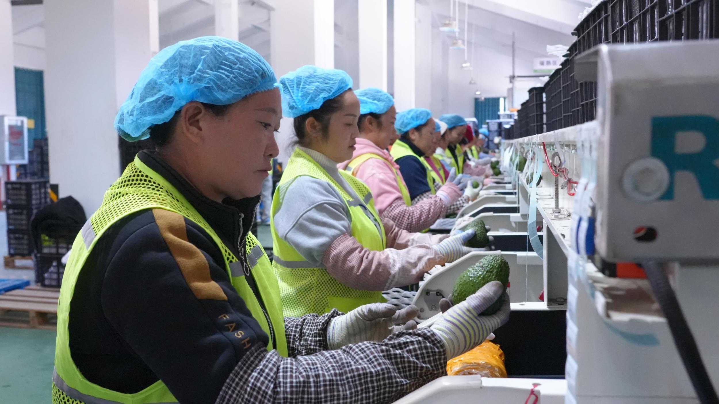 走进中国孟连牛油果集配中心,一派繁忙而有序的景象映入眼帘。牛油果清洗机、分检机等先进设备高速运转,工人们分工协作,选果、包装、搬运,每道工序有条不紊开展。“目前我们中国孟连牛油果集配中心每天的采销量在10万斤(市斤)左右,销往全国的一线城市,像北、上、广、深的一级批发市场,包括进入了一些商超,像盒马、山姆的一些超市都已经看到了我们孟连牛油果的身影,也让更多的用户尝到了我们枝头熟的孟连牛油果。”产业投资集团营销部总监王艳说。