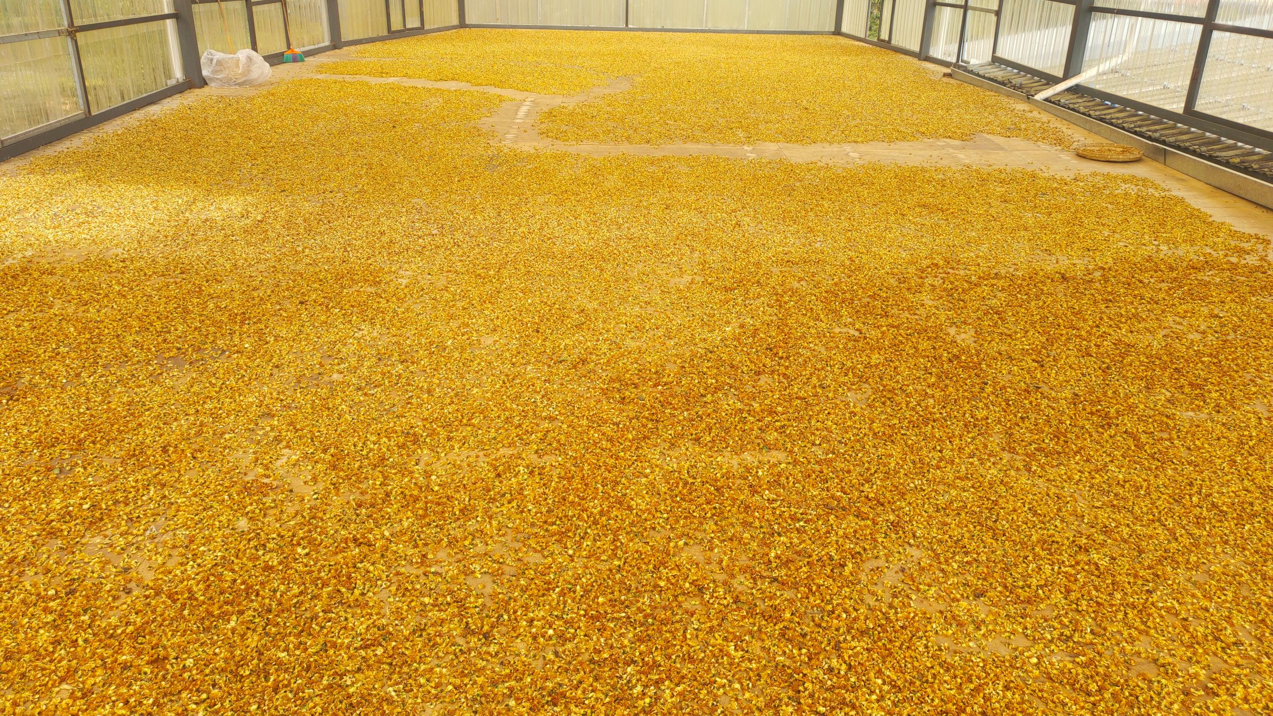 在茶树花产业发展过程中,除了茶树花种植,者东镇还在茶树花的采摘与制作上下足功夫。据了解,茶树花采摘须在晴好天气,精选饱满匀称、将开未开的花蕾,由人工轻取,以确保鲜灵度。后续的“锁香”工序普遍采用自然阳光晒干或室内阴干等传统方法,温和地去除水分,最大限度地保留花朵的完整形态、活性成分与清雅本味。这种古法看似“笨拙”,工艺繁复,成品率低,约十斤鲜花仅能制得一斤干花,但却提升了品质,实现了价值的巨大飞跃,成品干花市场价是鲜花的十多倍,这不仅是劳动与时间的沉淀,更是传统智慧获得市场高度认可的体现。