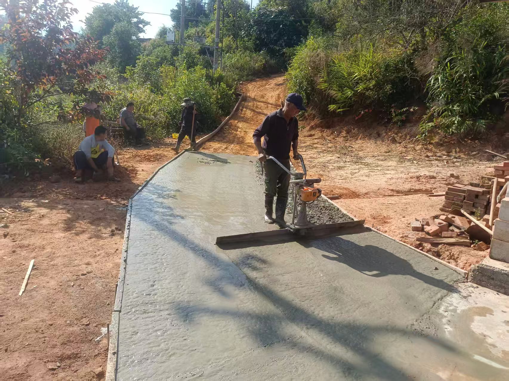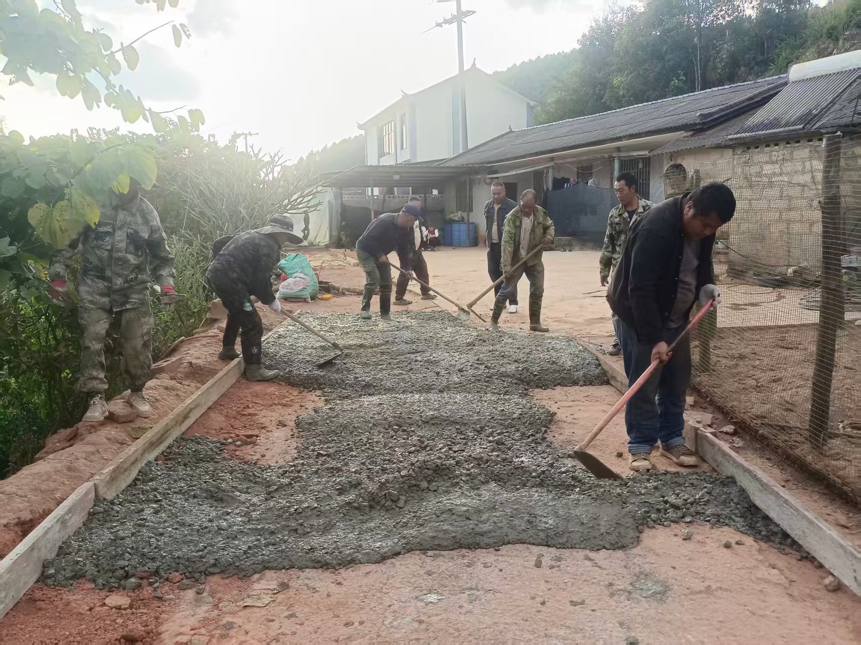 在道路修缮过程中,各乡镇(街道)探索“政策补一点、群众筹一点、投工投劳干一点”的共建模式,破解建设难题。目前,区交通运输局供应水泥3150.13吨,筑牢物资基础。各村组群众主动筹集资金购买石粉、碎石,自发拌合材料、搭建模板。群众不惧风吹日晒,自带工具、分工协作,在路基清理、路面铺筑现场连续劳作,呈现热火朝天的景象。