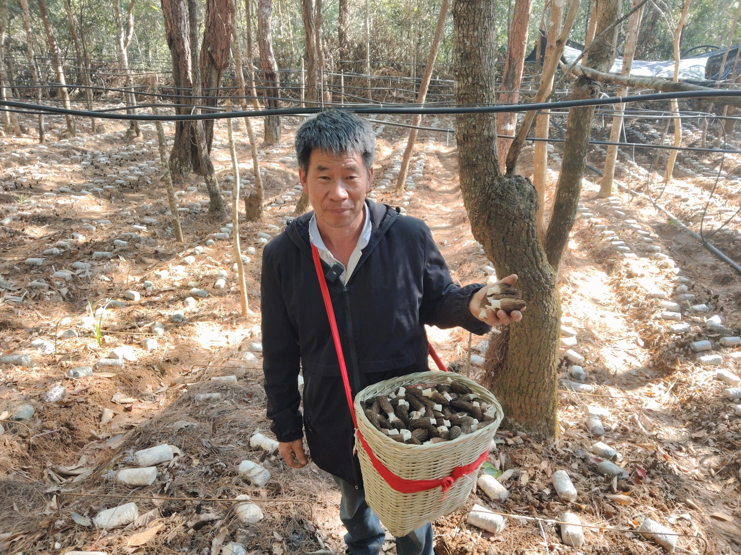 景东县太忠镇叶家坡村下坝塘种植户黄金寿说:“我2024年开始试种羊肚菌,2025年11月在林下防野生种植了3亩左右,总投资约1万元,2026年1月下旬顺利出菇,目前已进入采收高峰,预计总产量可达400公斤左右,按当前鲜菇每公斤120元计算,经济效益很可观。”