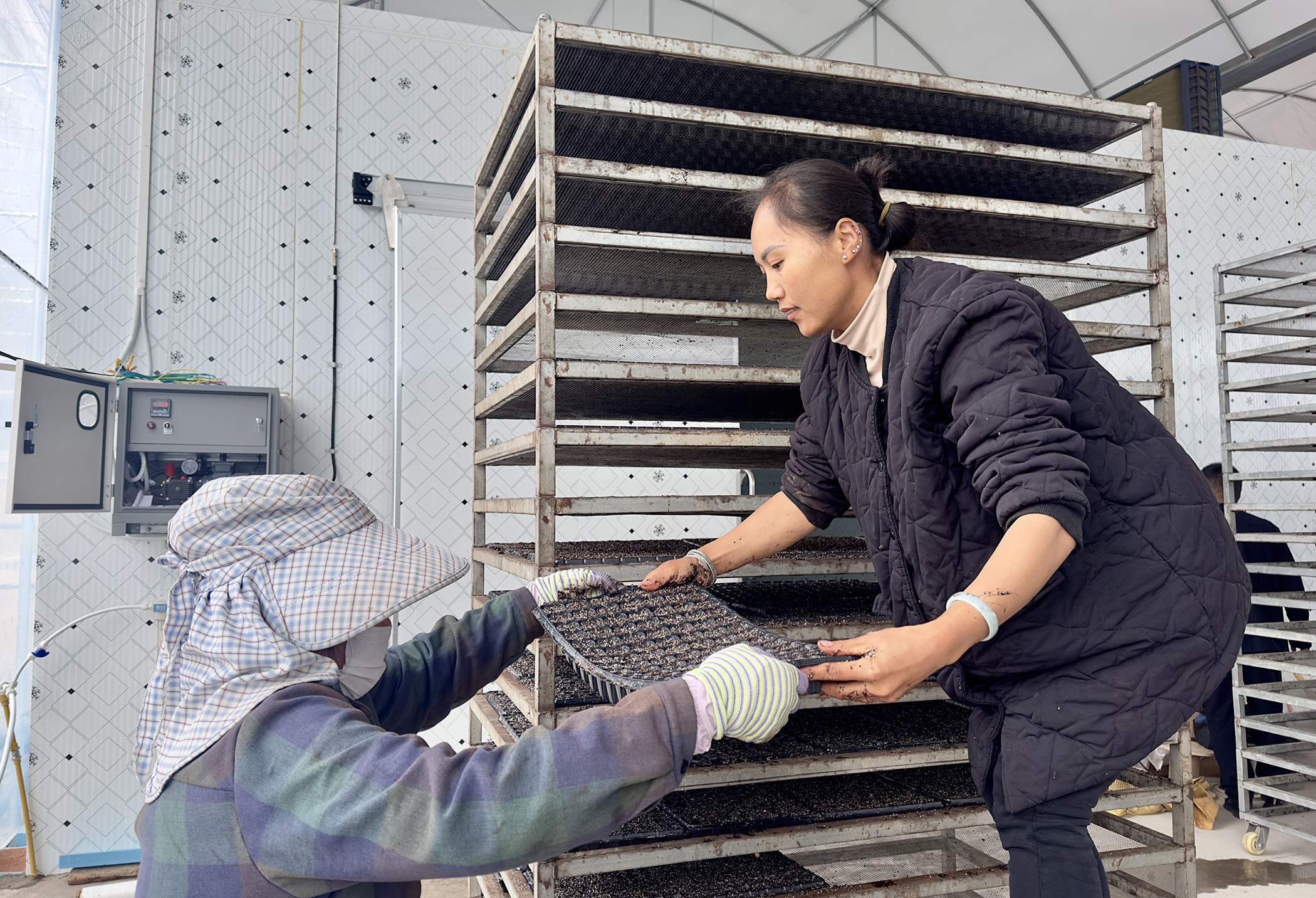 虽是冬日,普洱市镇沅彝族哈尼族拉祜族自治县者东镇者干河畔育苗大棚内却暖意融融,生机盎然。村民们在育苗架间分工协作,一系列育苗动作娴熟流畅,指尖翻飞间,奏响了乡村振兴的希望乐章。