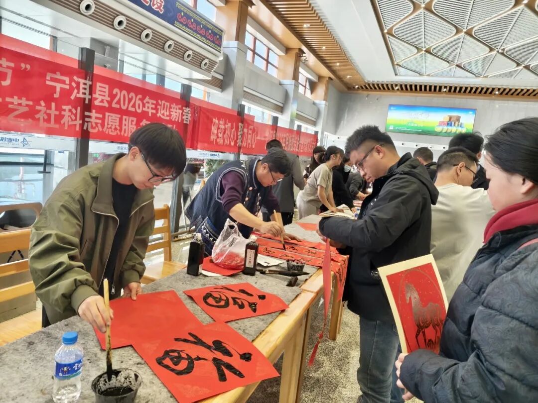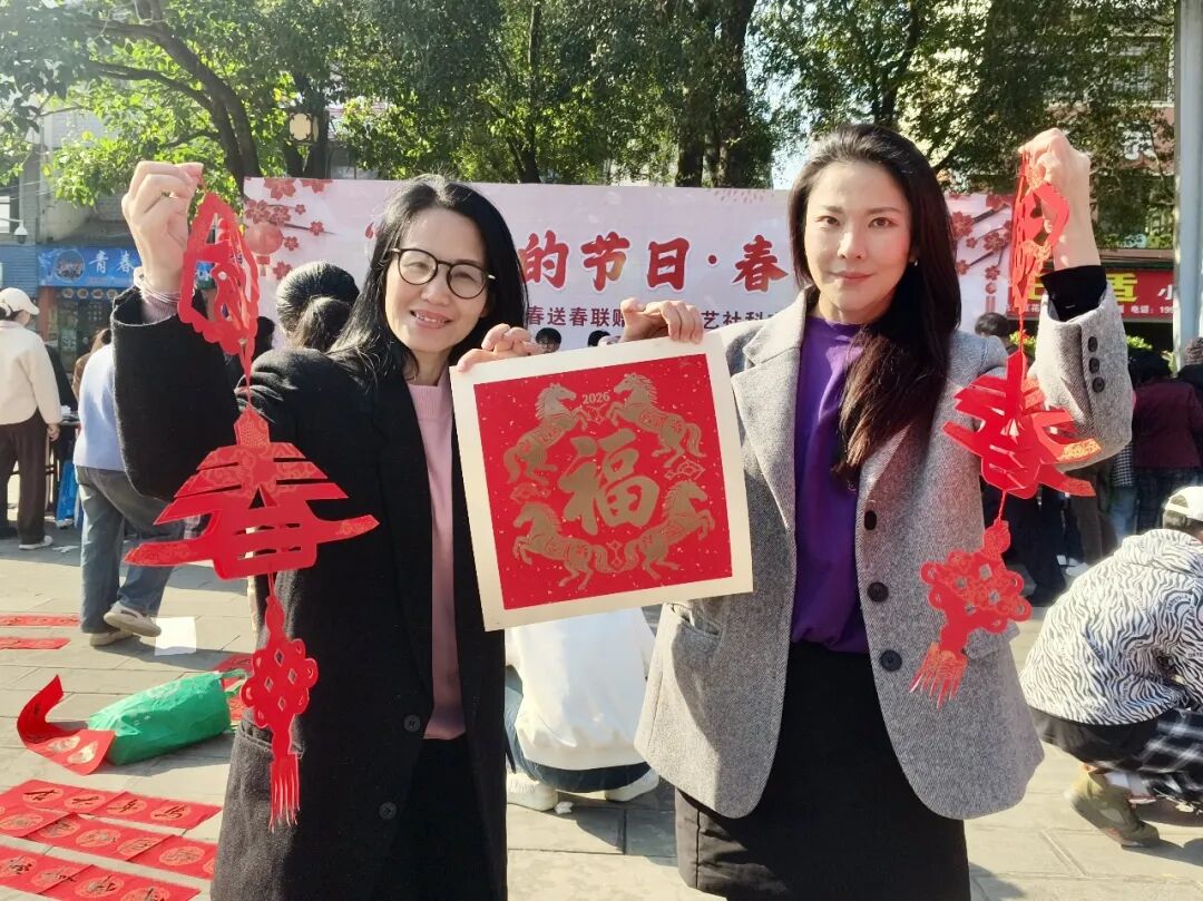 近日,“我们的节日·春节”2026年迎新春送春联赠福字文艺社科志愿服务活动在普洱市宁洱哈尼族彝族自治县茶源广场热闹开展。活动以文艺社科志愿服务为载体,将新春祝福、本土文化与民族团结理念深度融合,为各族群众送上一场有温度、有底蕴、有年味的新春文化盛宴,让年味更浓、民心更暖。