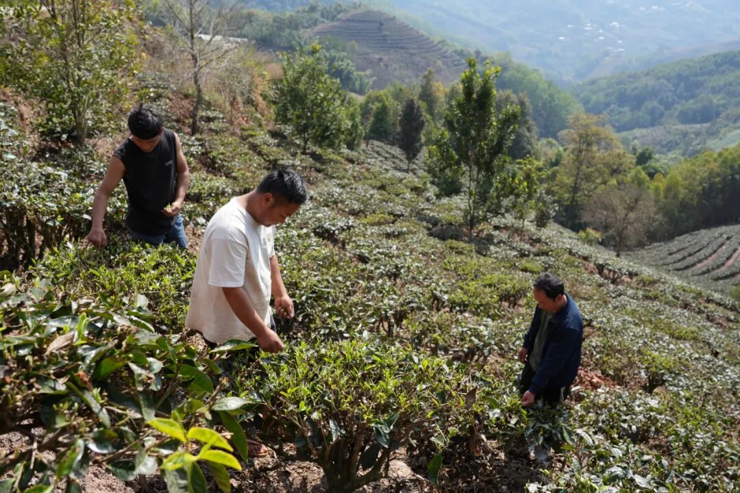 “由于2025年润了一个月,所以今年头茶发芽更早,立春前一两天就已冒芽,芽头饱满、长势喜人。”勐先镇竹山村村民陈聪介绍,梨果树小组近60亩茶园种植云南高山茶实心苗,该品种根系发达、抗逆性强,是当地茶产业的重要根基。