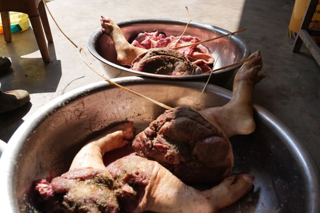 村民家新鲜腌制的腊肉 杨媚 摄