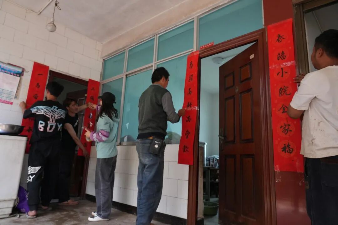 村民贴春联迎新春 杨媚 摄