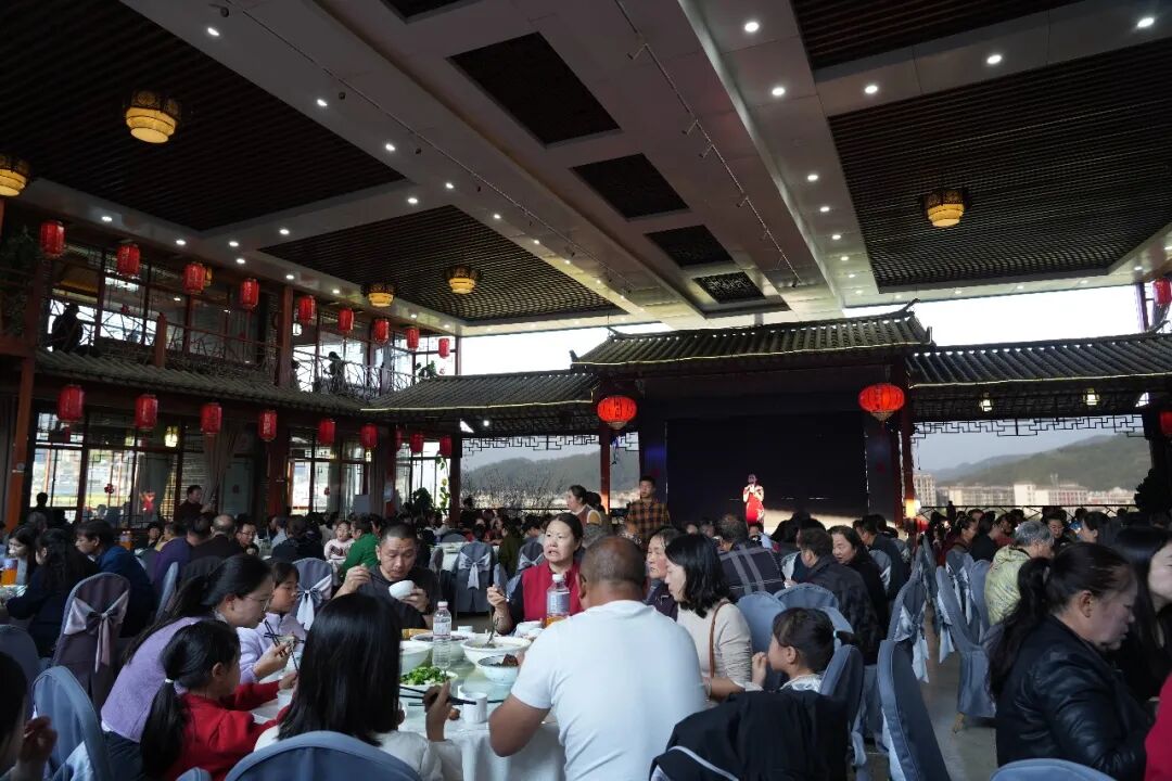 柴火烧得正旺,大锅里的肉咕嘟咕嘟冒着香气,院子里人声鼎沸、座无虚席。五百余名乡亲邻里和外地游客围坐成数十桌,在一顿热气腾腾的杀猪饭里,提前把年过出了滋味,在欢声笑语中感受彝家烟火气。