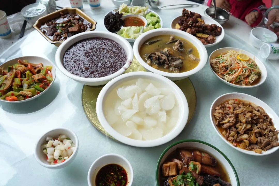 桌上摆的,也不只是菜。猪肝炒饵块软糯油润,炖土鸡汤色澄黄,时蔬清甜解腻,每道菜都带着农家自足的丰盈。但比食物更动人的,是人。择菜的、添柴的、端盘的,认识的、不认识的,都在吆喝和笑声里成了一家人。