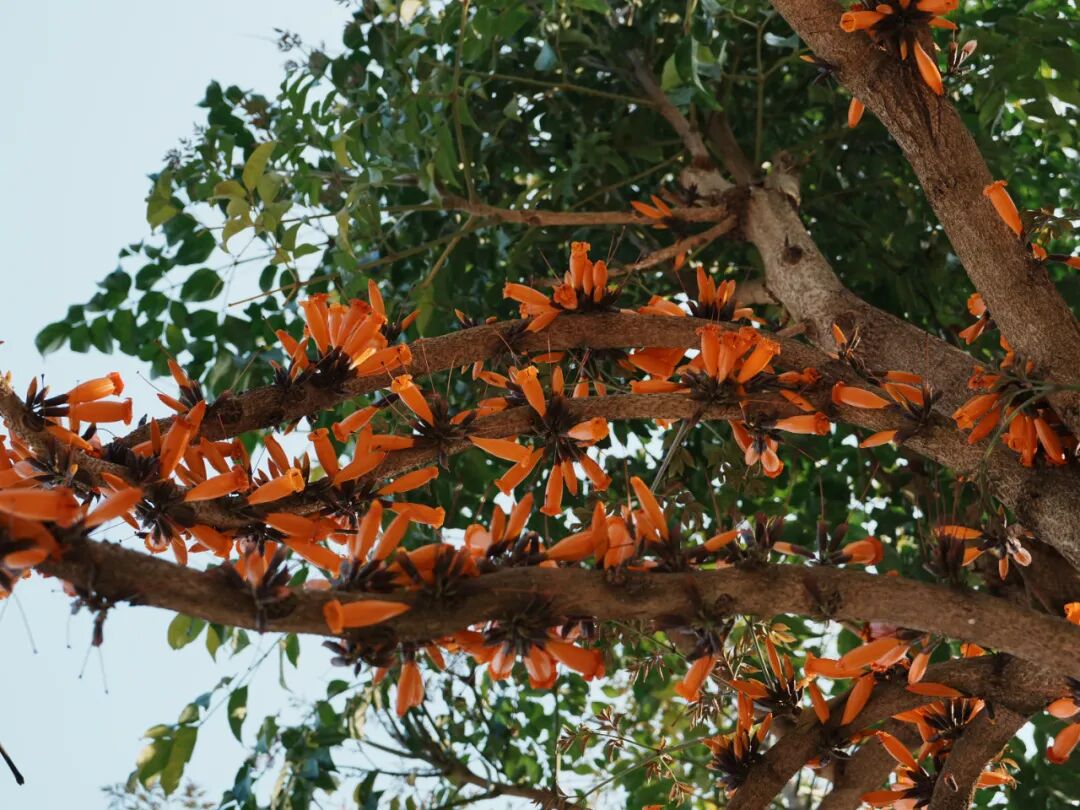 黎明乡的春天,是被火烧花唤醒的。火烧花总在每年2至5月如约而至,黝黑的枝干上,喇叭状的花瓣舒展身姿,一簇簇、一串串,远远望去,宛如燃烧的火焰漫过枝头。风一吹,花瓣轻舞,花香便伴着山间的清风,漫过田埂、飘进村寨,把整个黎明乡都浸在淡淡的清甜里。这份独有的春日盛景,是黎明乡最动人的名片,也让“吃花”成为这里不可错过的春日仪式感。
