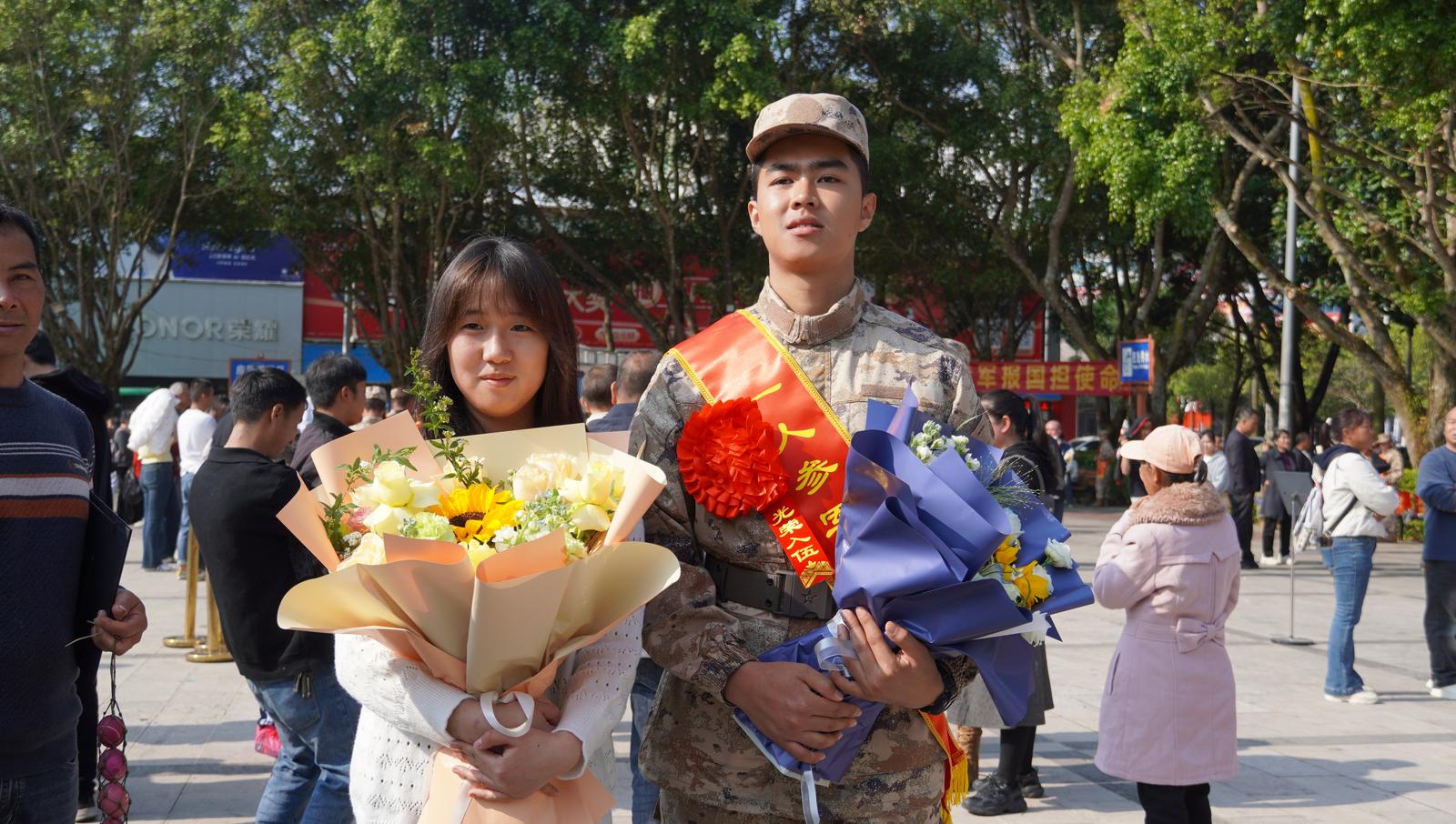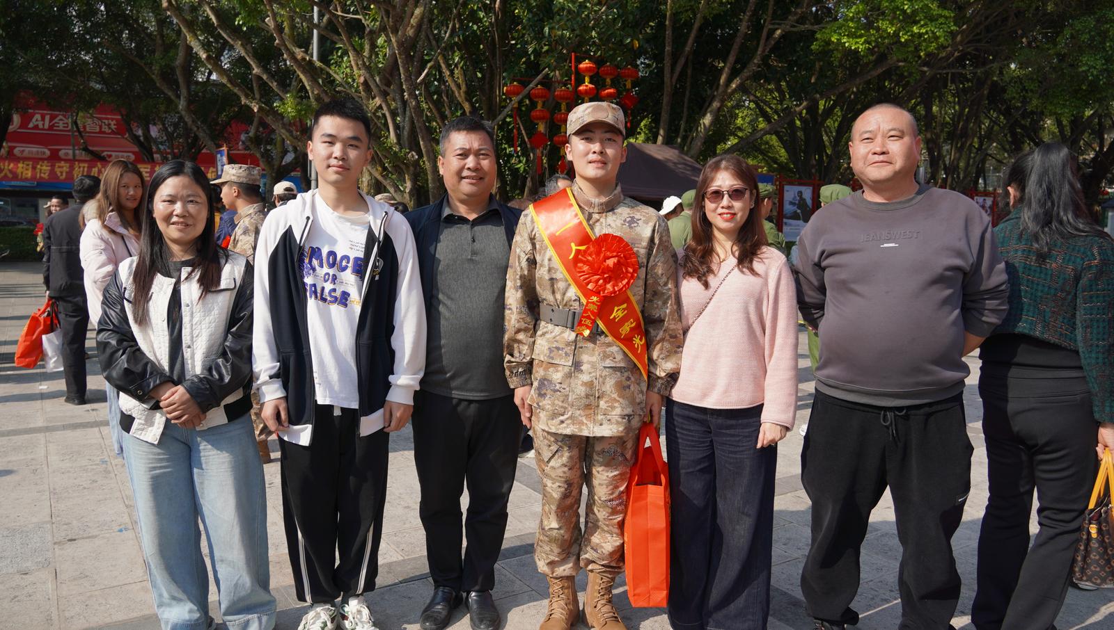 仪式结束后,应征青年们与家人、朋友合影道别,带着乡亲父老的叮咛嘱托,怀着对火热军营的憧憬和向往,踏上从军路。