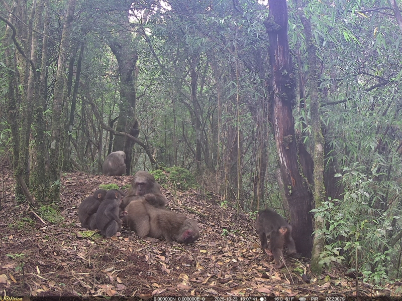 近日,云南无量山国家级自然保护区的工作人员通过野外架设的红外相机,首次在云南省普洱市景东彝族自治县区域近距离拍摄到国家二级重点保护动物短尾猴理毛嬉戏的珍贵画面。