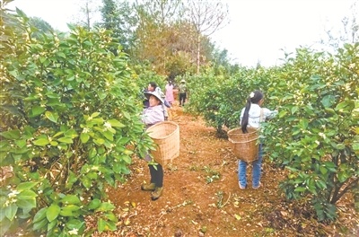 在文东乡帕赛村下那拱村民小组,花农们正在采摘玳玳花。据了解,文东乡帕赛村从2018年开始种植玳玳花,共种植825亩,目前已进入丰产期,预计每亩玳玳花收入有1000元左右。