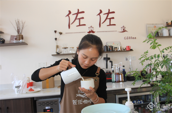 经过咖啡制作培训学习后,戈娜四已经会制作各式咖啡饮品,在大城市能喝到的咖啡饮品,在佐佐咖啡屋也能喝到。“在这工作每月能有几千元的收入,在家旁边就能赚到钱,非常方便。”戈娜四说。