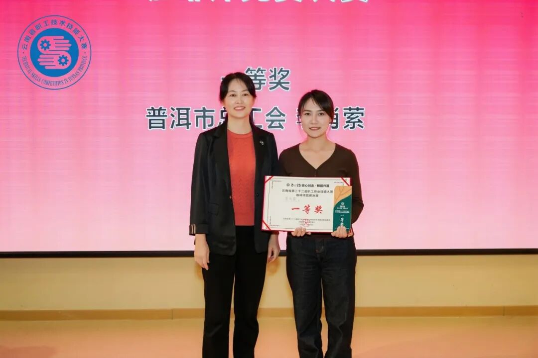 普洱市总工会代表队的李肖萦斩获竞赛一等奖。(右一)